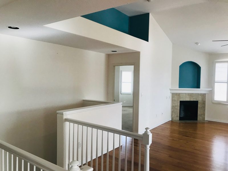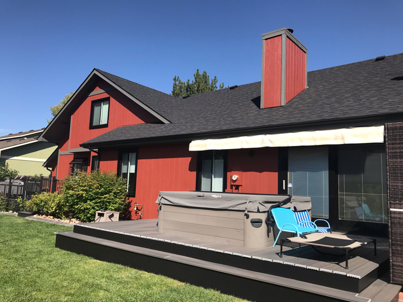 Several projects combined here. Some trim painting, shelf painting, walls in new colors, and an extreme color conversion on an exterior to red siding and gray/black trim.
