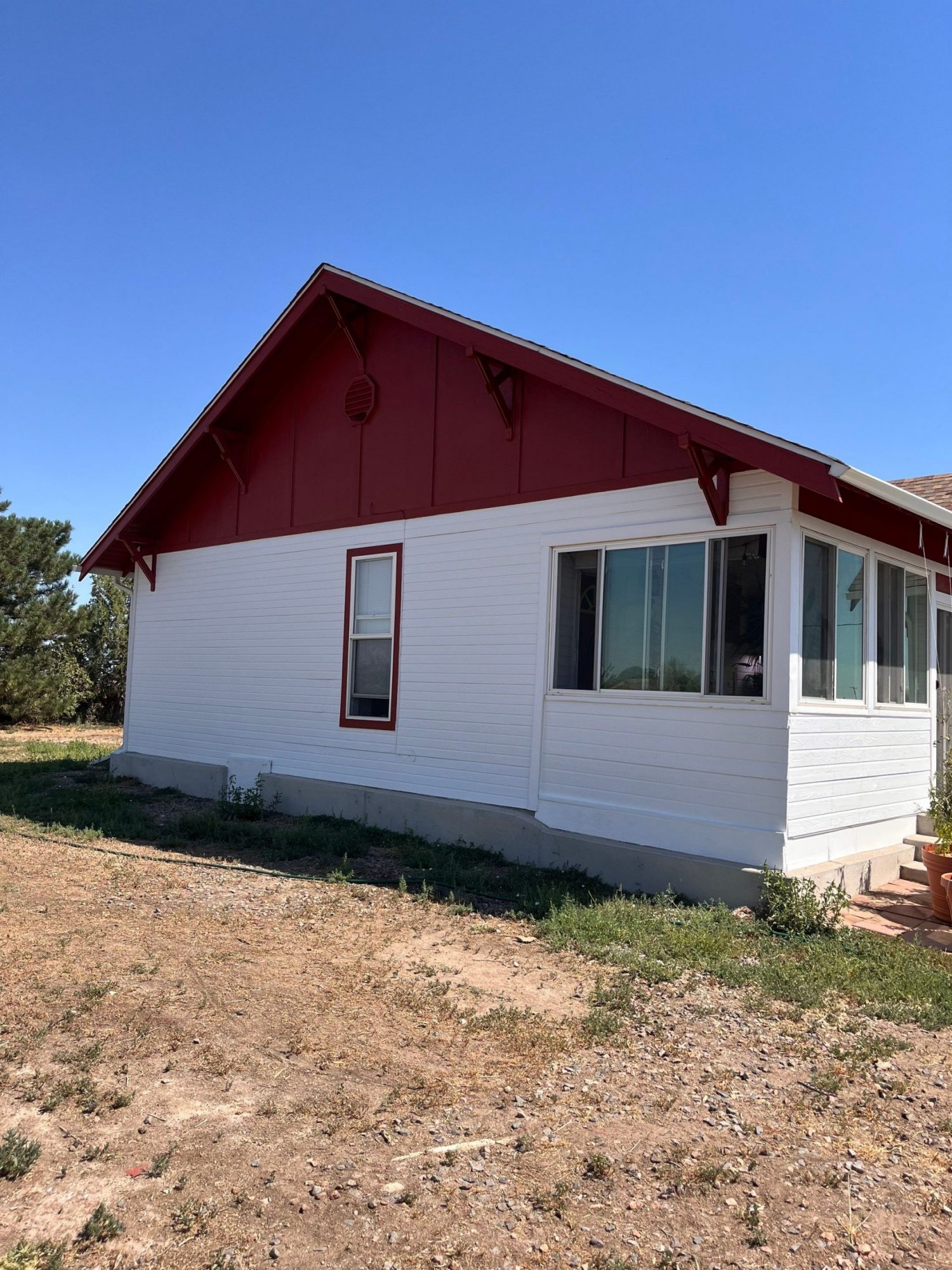 The photos below show the farmhouse and shed with peeling paint, dirt buildup, and weathered trim—clear signs of Colorado’s tough climate.