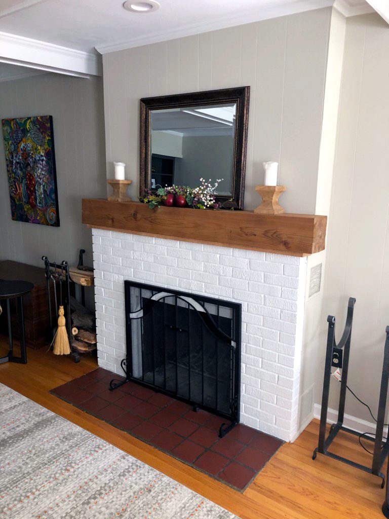 Our interior painters are skilled in painting bricks and fireplaces like this one, in white with a stained mantel.