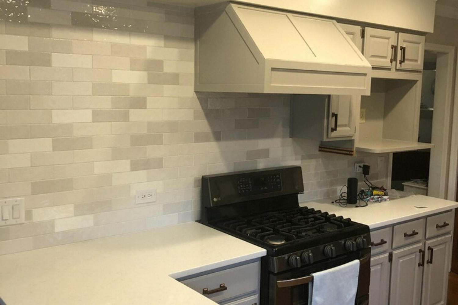 Oak cabinets from the early 1990’s are given an updated and modern look.