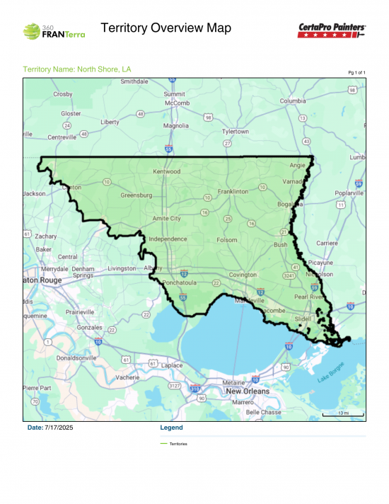 North Shore, LA, centered in St. Tammany Parish, offers one of the strongest growth markets in southeast Louisiana. The area blends suburban comfort with consistent homeowner turnover and rising home values. With a median household income above the state average and expanding neighborhoods like Mandeville and Covington, there’s steady demand for professional painting services. From lakefront homes to retail plazas, the market is diverse and scalable. For franchise buyers looking to invest in a community-driven business with reliable lead flow and long-term potential, North Shore delivers both economic stability and upside.