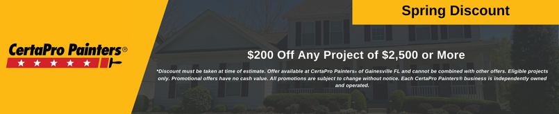 Limitations and restrictions. All offers apply to new proposals only. The offer must be mentioned a the time of the proposal estimate. Offer limited to one promotion per project and cannot be combined with any other offers. Not valid on current estimates or proposals. Valid only at CertaPro Painters of Gainesville, FL.