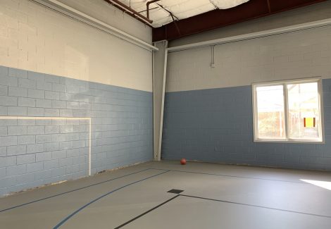 white and blue painted walls of the Collierville gym interior after the repainting work was complete