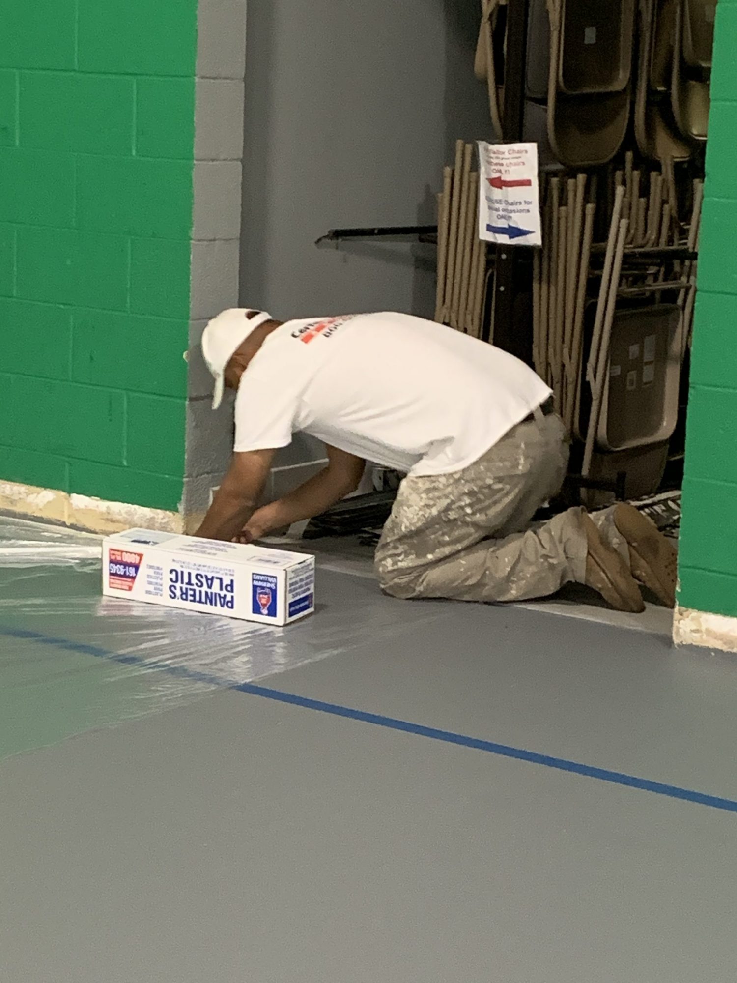 Below is a school gym we painted in the Greater Germantown area. You can learn more about this project here. Click on any image to zoom in.