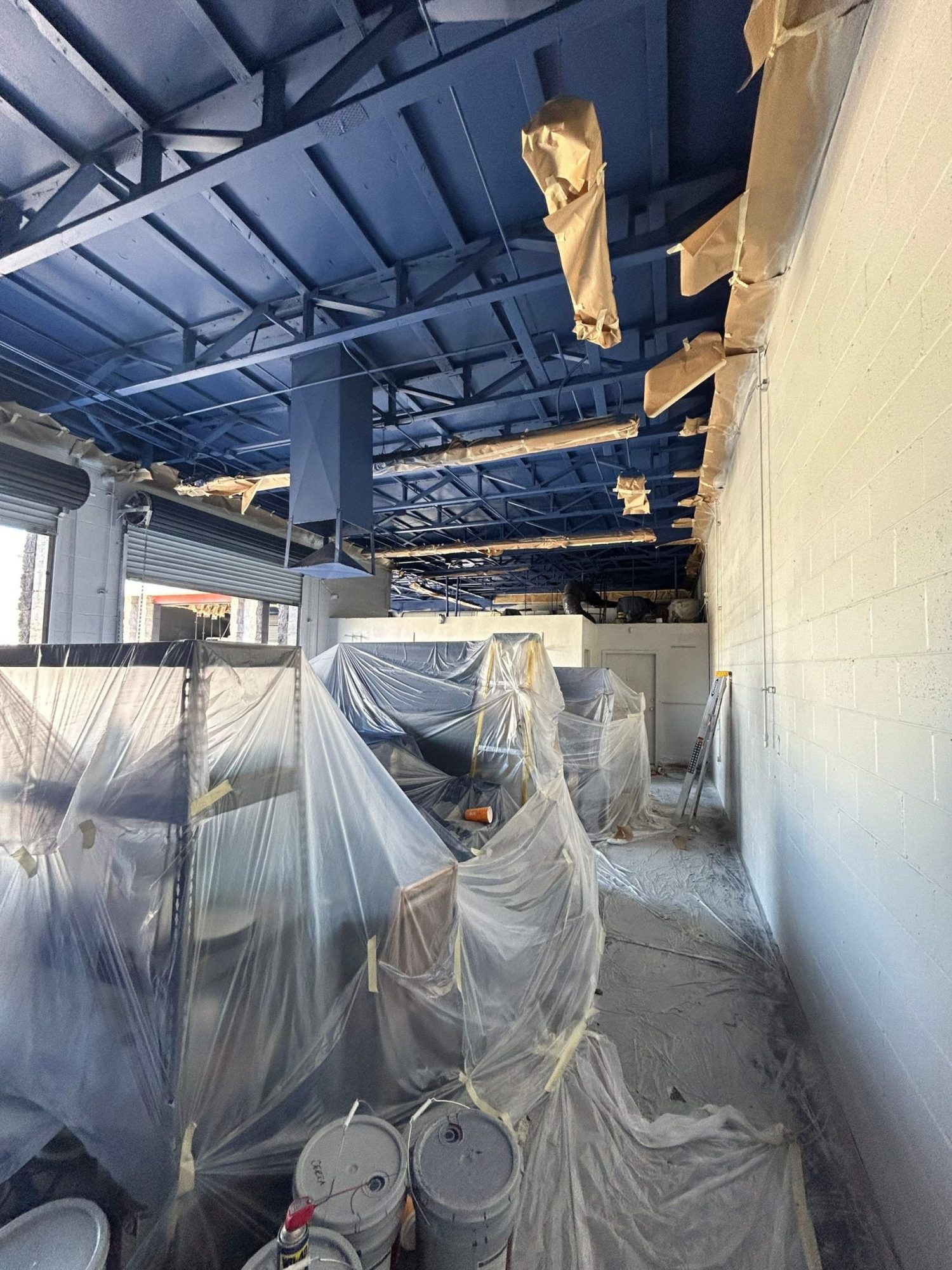 Other trades working at the same time as well as the shop preparing for their grand opening. We had a week to complete the project.