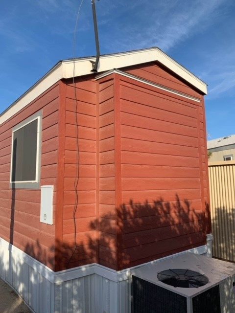 Our team was specifically tasked with replacing the fading red color that was applied to the modular home previously.