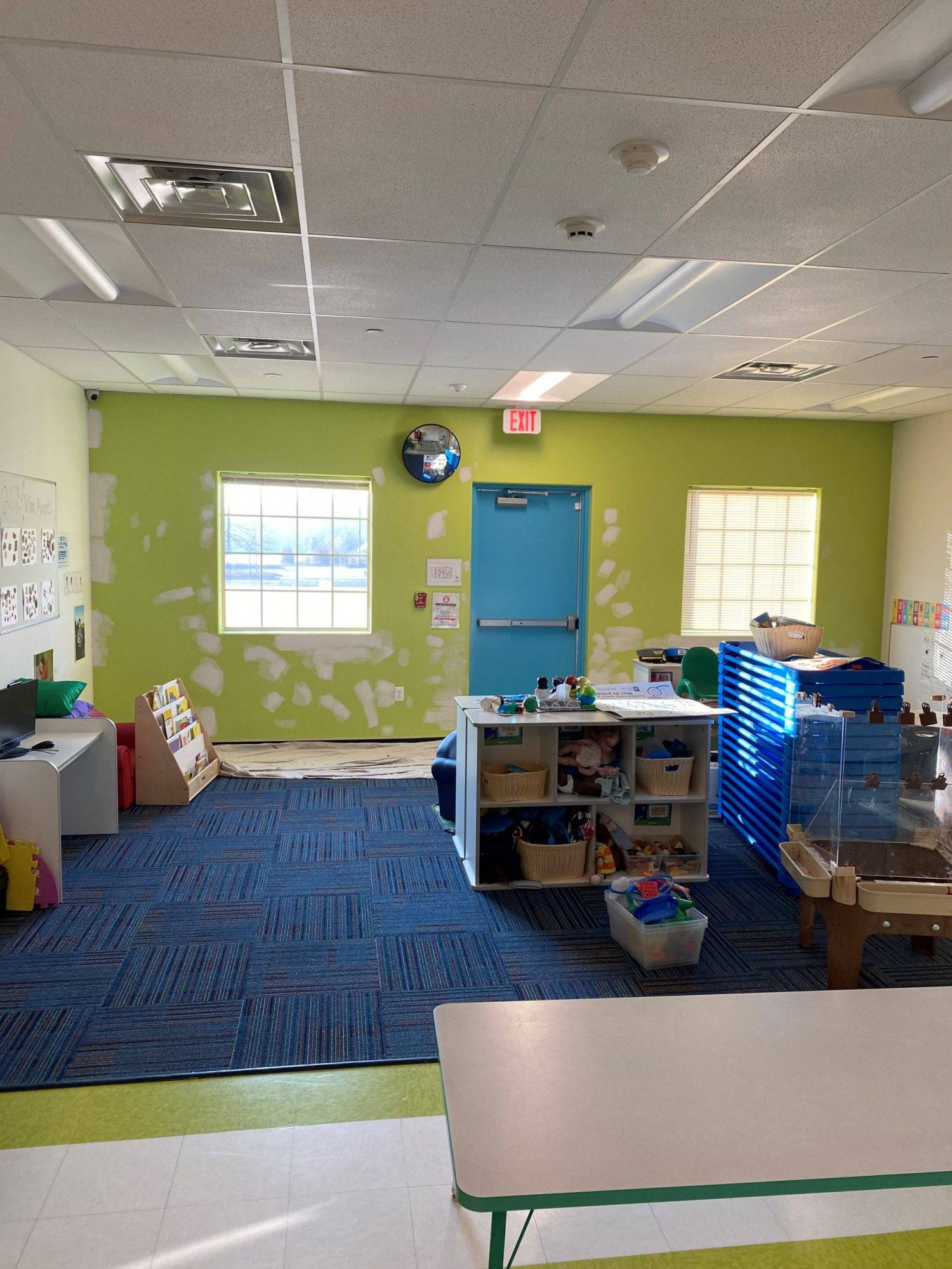 This past January, the team at CertaPro Painters of Glen Ellyn, IL was asked to help refresh the interior of the Learning Experience’s classroom. We had already done some exterior work for the school in July of 2023, so we were more than happy to come back out to paint the interior. The project was set to involve making some minor repairs to the drywall of the space, color matching, and painting the walls of the classroom.