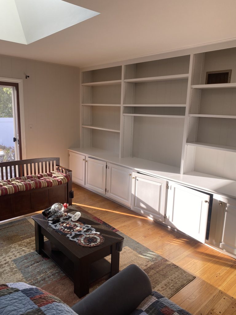 Interior: Your furniture and décor are placed in the center of the room, covered with new plastic, and all flooring is protected with drop cloths.