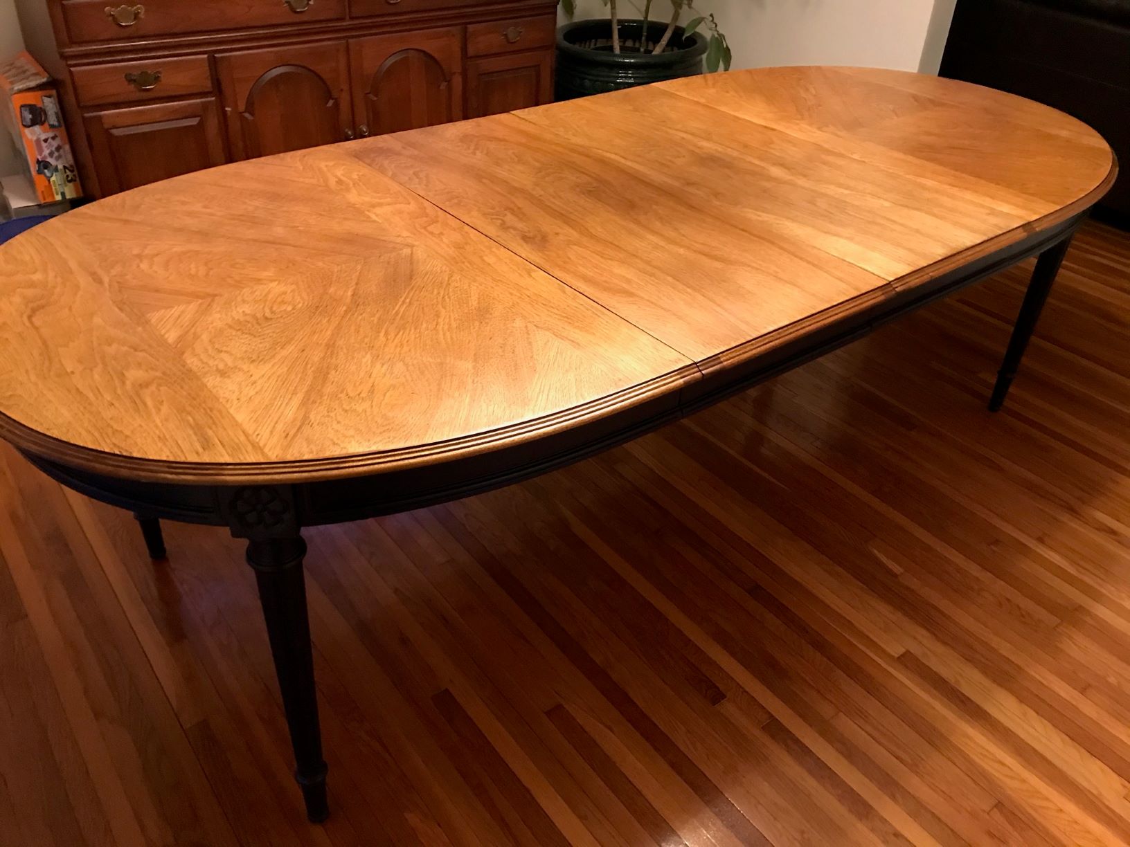 This wood table is a great example of what we can do with your wood or metal furniture. This particular table looks worn and dated in the before image. The top was restained and the table legs were painted using Sherwin Williams color of the year for 2019- In the Navy (SW 9178). The final outcome is a beautiful table that looks great and is ready for service for years to come.