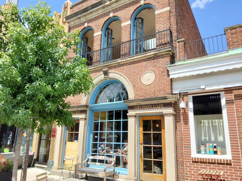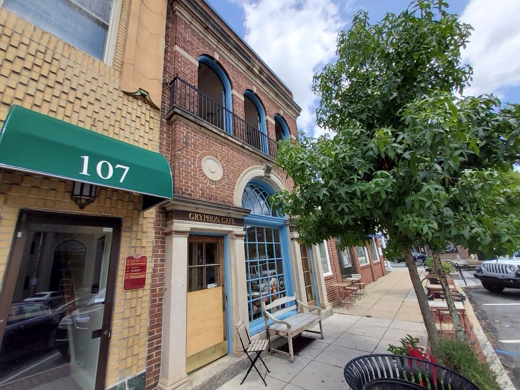 Our team recently completed this commercial painting project in Wayne, PA. We changed the exterior trim color of this popular local coffee spot to SW 6180 Oakmoss!