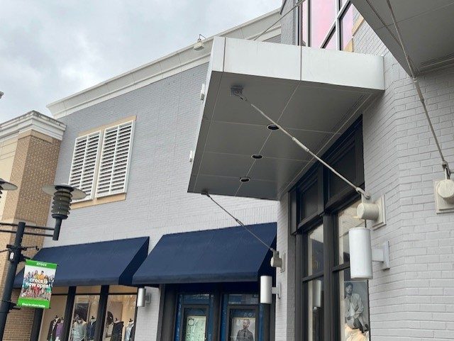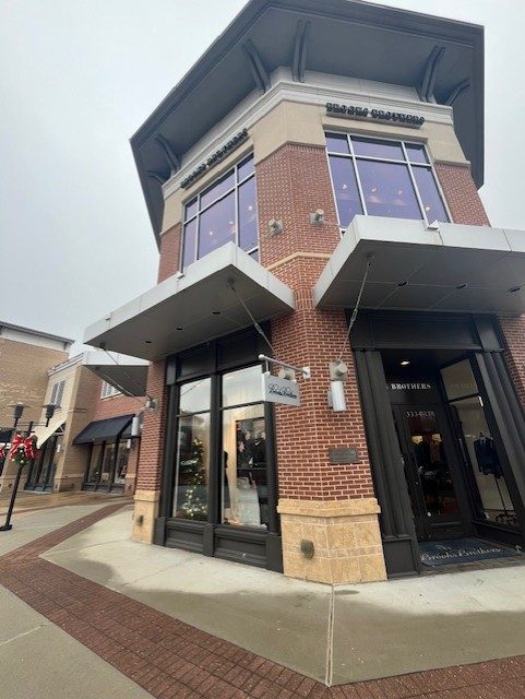 CertaPro of Greensboro was asked to paint the Brooks Brothers building at Friendly Center, a large outdoor shopping mall in Greensboro. The building featured unpainted brick and several architectural features to paint around (such as canopies).