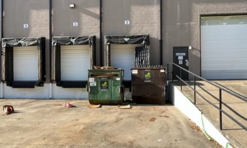 To begin with, a full pressure wash of the entire building was required, not only for the dirt, but to remove loose paint as well. Following the pressure wash, the crew prepped and spot-primed rusted areas on railings and metal stairs. The team then fully primed unpainted concrete, and finished with the final coats on all painted surfaces including building walls, adjoining retaining walls, roll up doors and frames, and railings and ladders.
