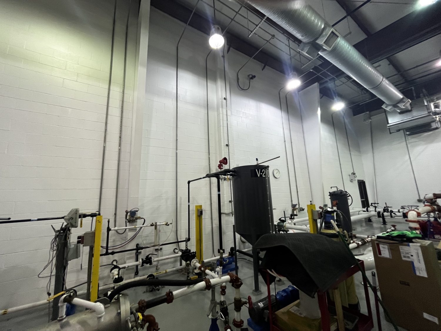 CertaPro Painters pressure washed the exterior to remove grease, dirt and loose paint. They caulked cracks in the block walls and scraped/sanded railings and pipes that were peeling. Since Facet is a working fuel lab, access challenges were seen throughout the job – this required painting around sensitive equipment, pipes and conduit. Some of the tight access points really put the CertaPro crew to the test. The crew was able to complete the job in about two weeks during November 2022 without impacting the normal lab operation.