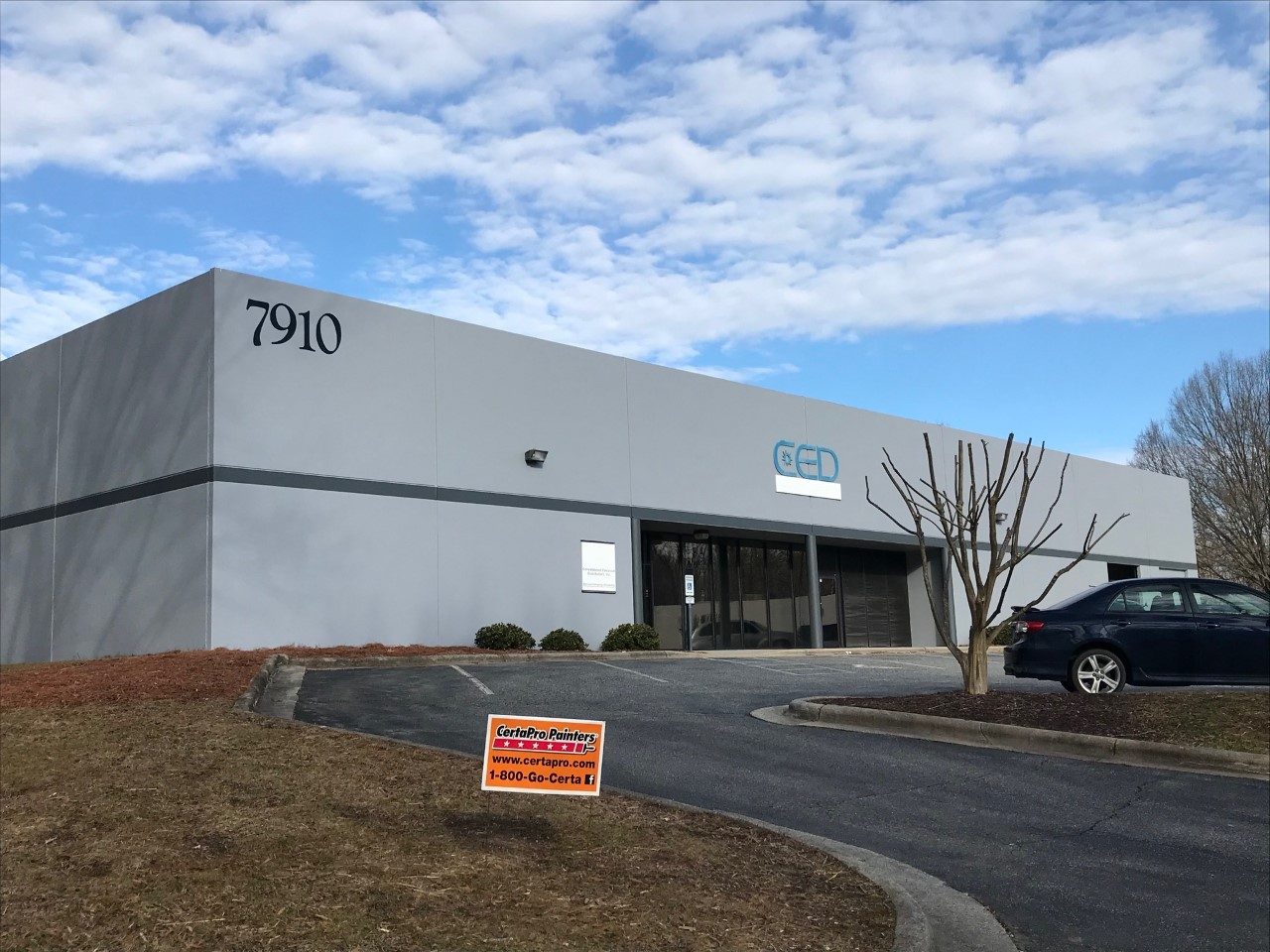 In December 2020 our team was hired to repaint the exterior of a group of three industrial buildings. The client also expressed a desire for a new color scheme to match the Radar Road project, so we had to be prepared to paint all the exterior walls and entrances, all while working to ensure we did not interfere with the operation of the tenant businesses that were open during the project. The weather was an additional challenge – working around the available weather windows sometimes meant working weekends and holidays.