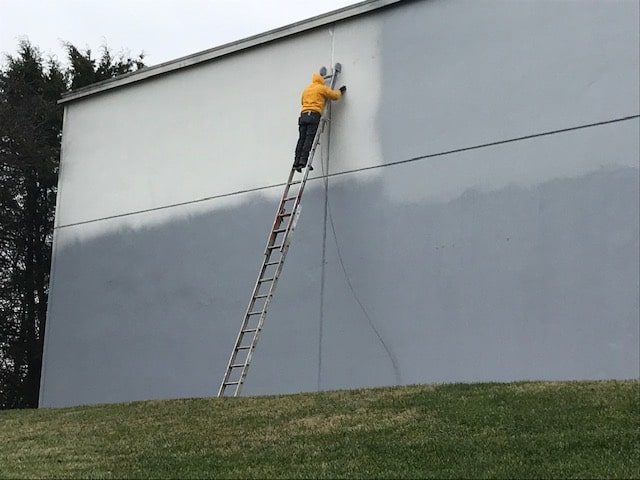 Our team was asked to freshen up the exterior of tilt-up office buildings on Radar Road next to the Piedmont Triad International Airport. Tilt-up is a type of construction where concrete is cured in a horizontal position then “tilted” into a vertical position.