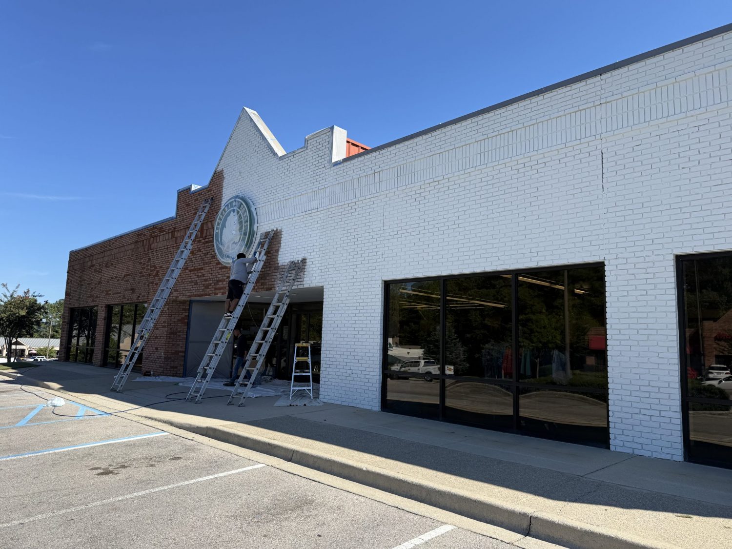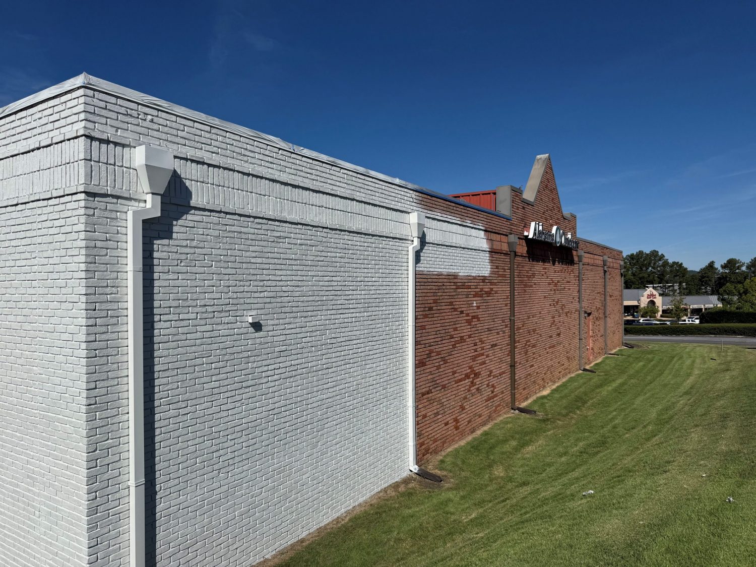 Our team at CertaPro Painters of Greystone painted the brick on the exterior of this commercial building in Inverness in September, 2025. The color is Sherwin Williams “Greek Villa”.
