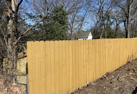 Our team stained this wood privacy fence in Homewood with Farrell Calhoun’s “Cedar” semi-transparent stain in December, 2023.