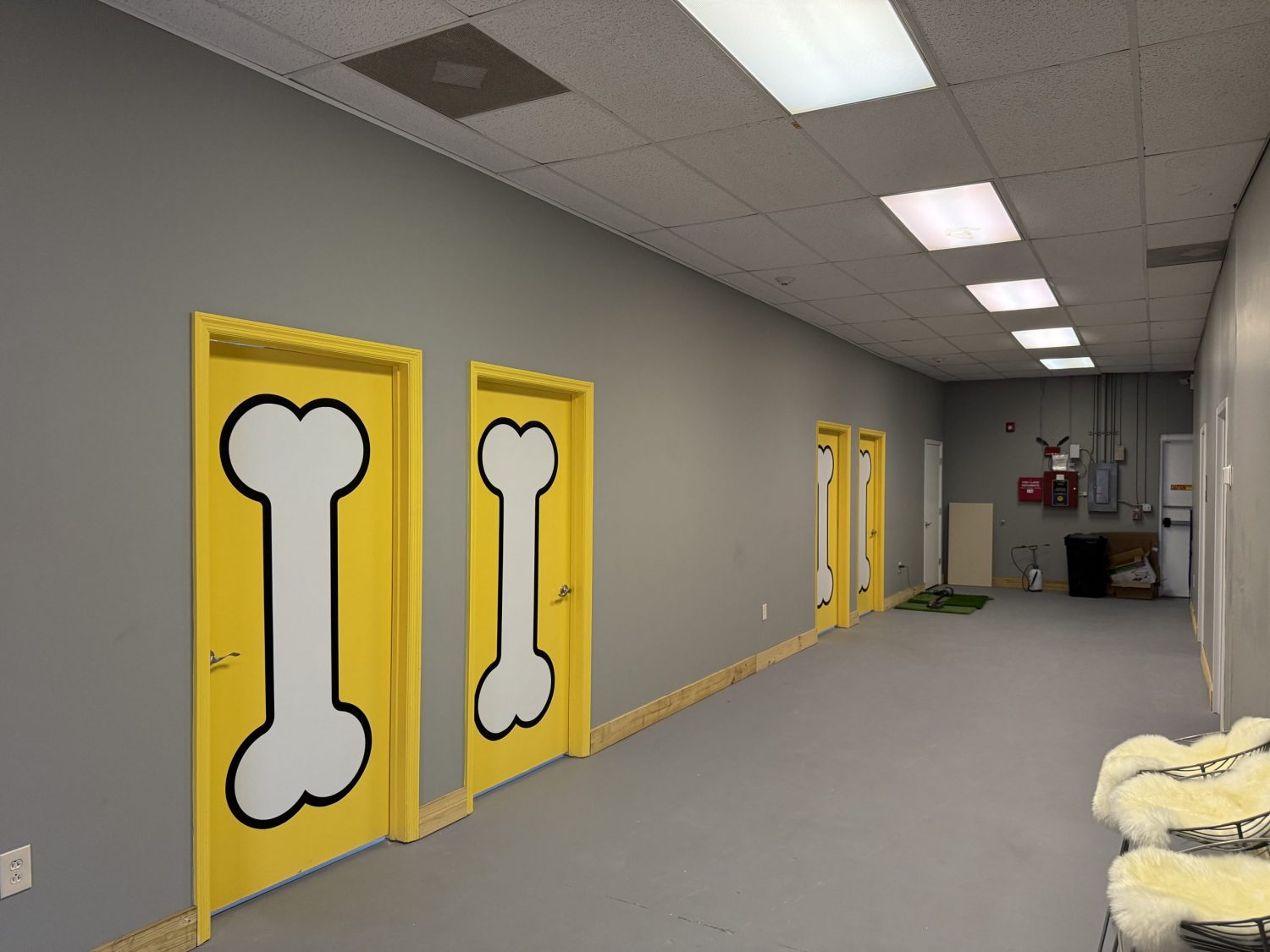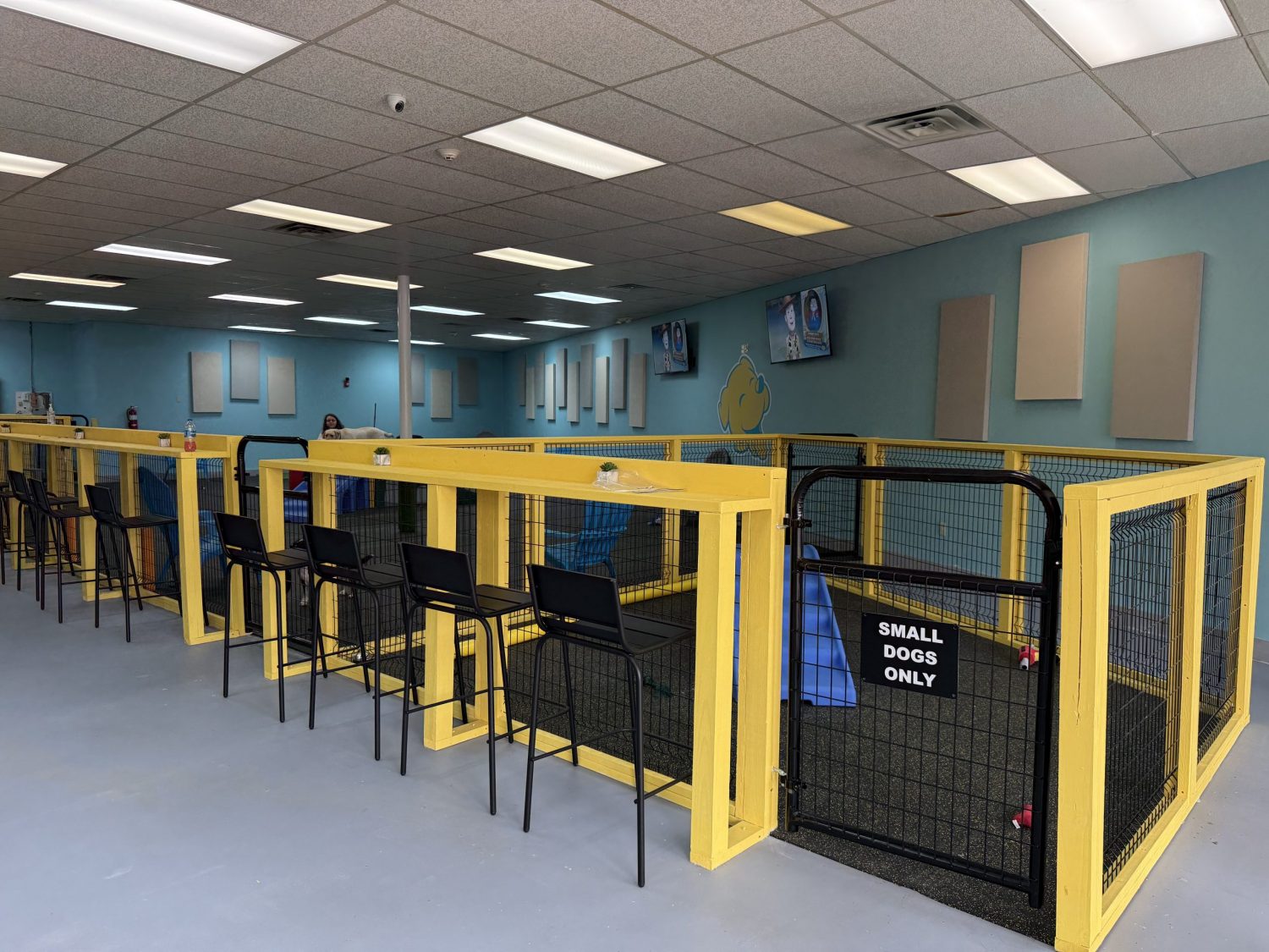 Our team painted the interior of the new The Bark Park in Birmingham in January, 2025. The colors are Sherwin Williams “Decisive Yellow”, “Gentle Aquamarine”, and “Gray Matters”.