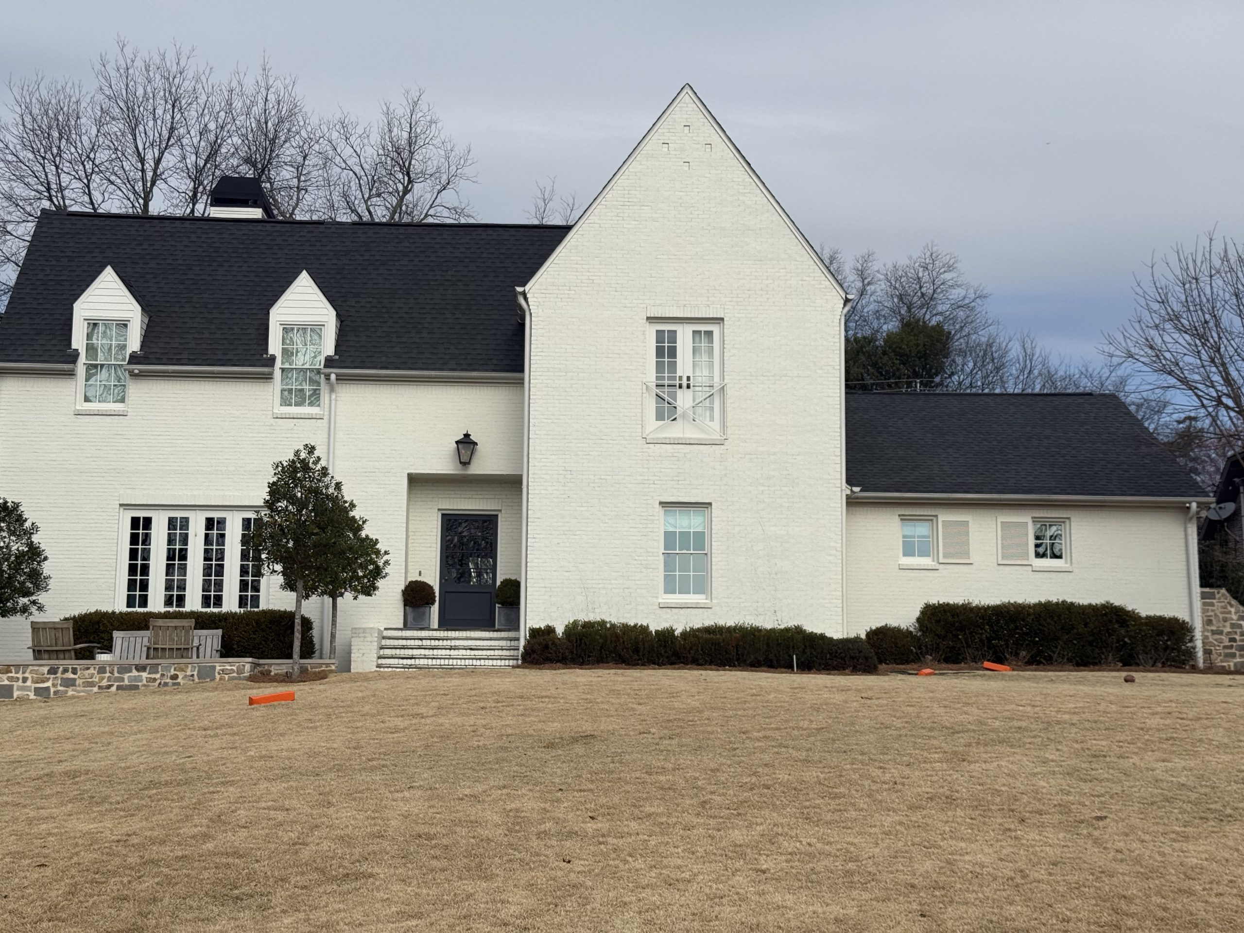 Our team at CertaPro Painters of Greystone painted the windows & doors on the exterior of this home in October, 2025. The color is Benjamin Moore “Swiss Coffee”.