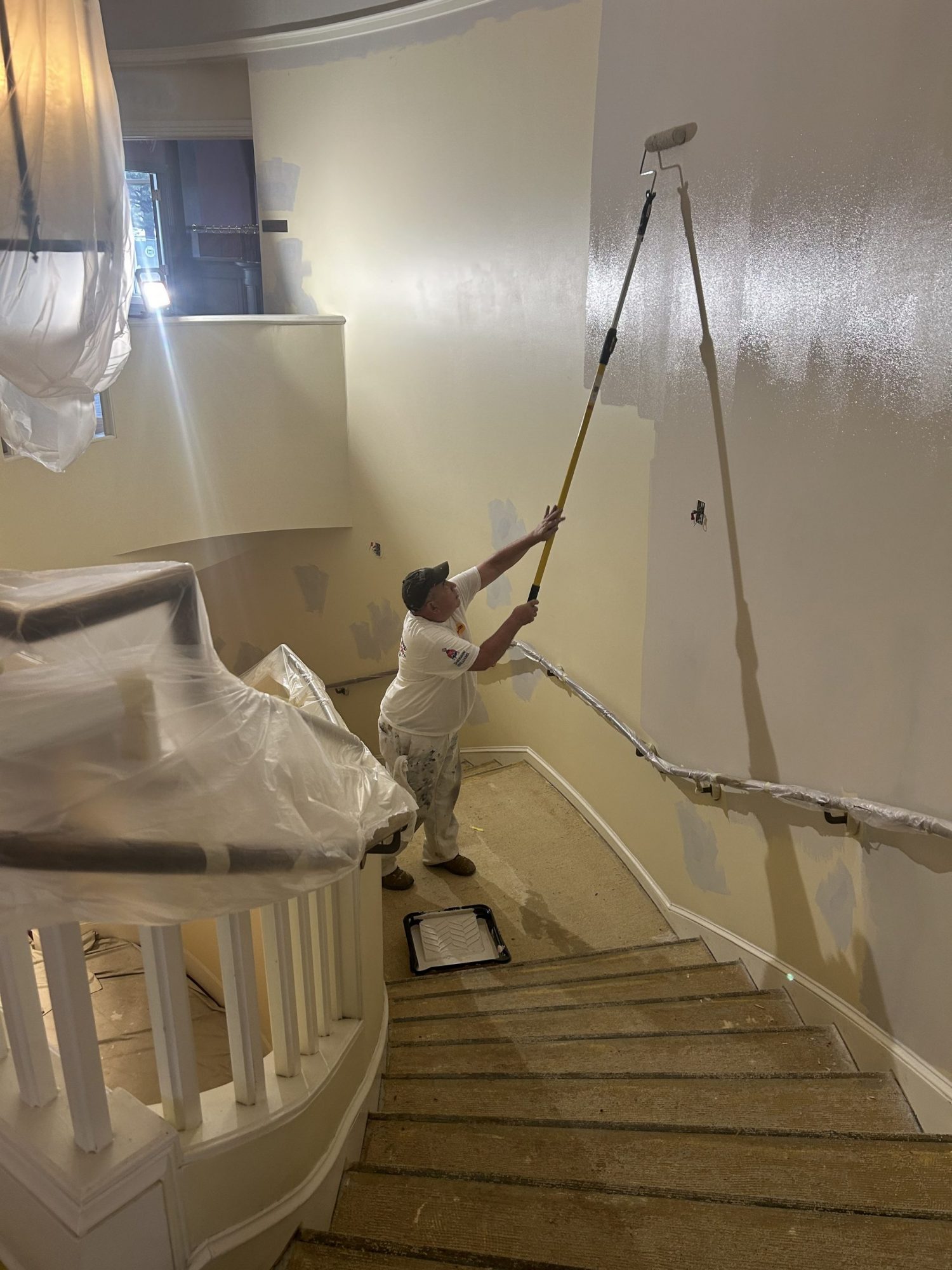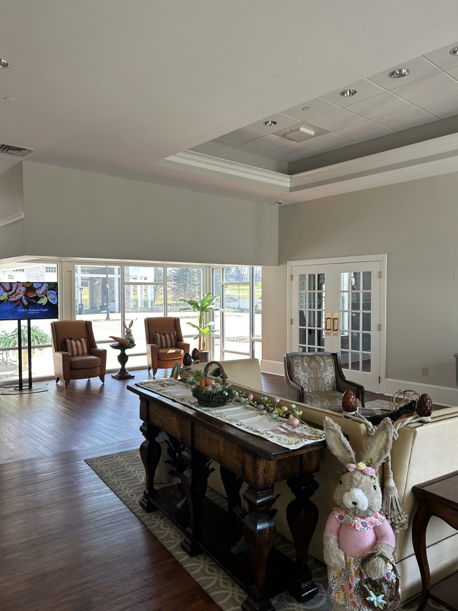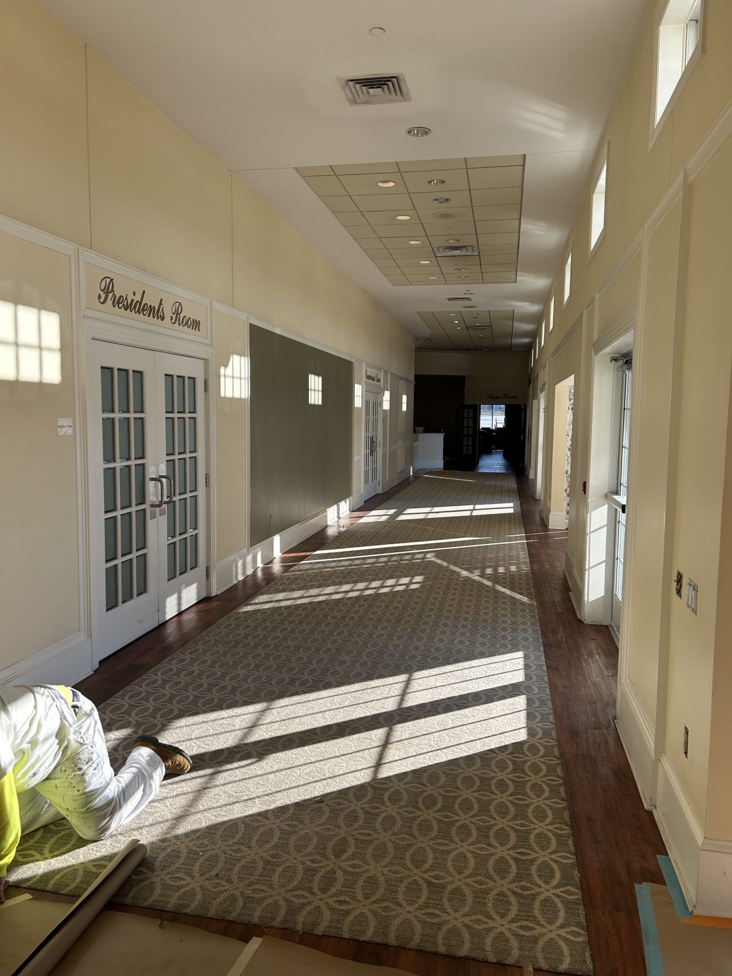 In February 2024, the country club came to us looking to have us refresh several interior surfaces that were outdated with significant scuffs and blemishes. Multiple high ceilings in tight spaces needed to be painted, and drywall repair services were needed too. The project was to be completed on a very tight timeline and would require coordinating with other contractors to ensure the project timeline wasn’t delayed.