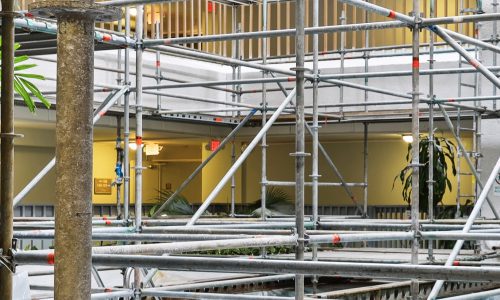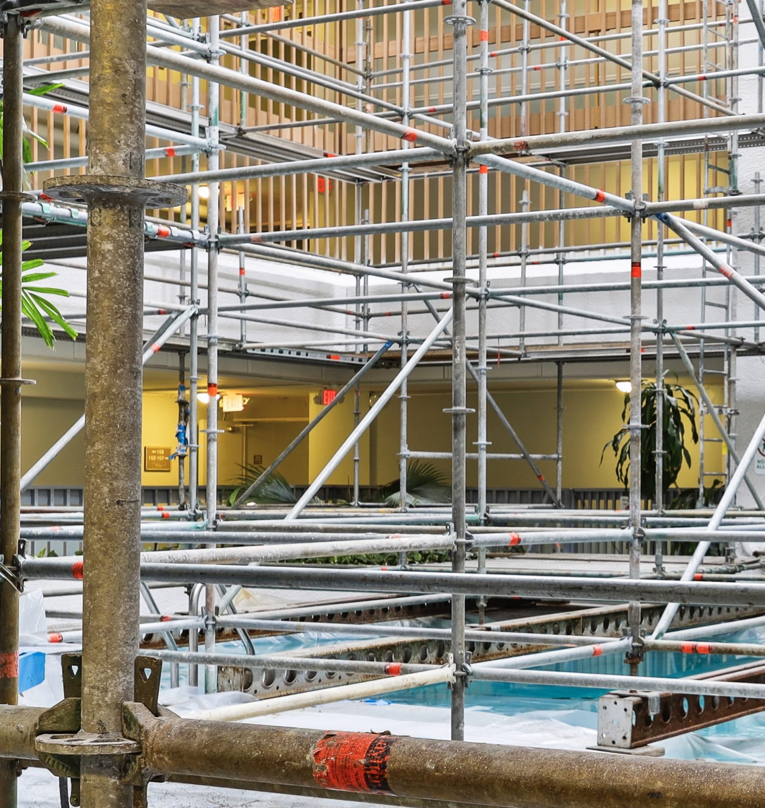 Given the height and scale of the project, scaffolding was essential to safely and efficiently complete the work. This allowed our team to reach all five levels as well as the ceiling, ensuring precision and quality in every detail.