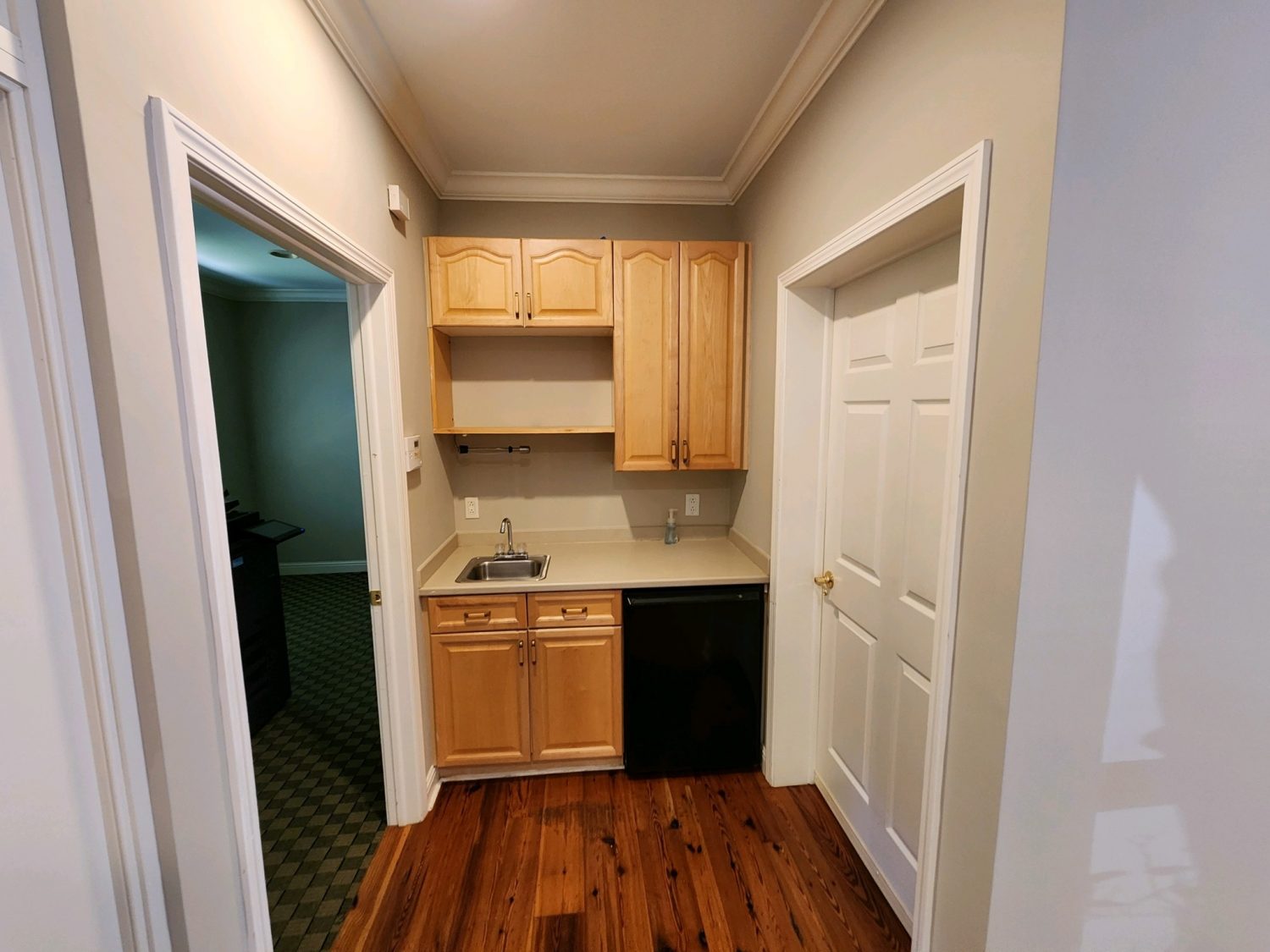 This suite of offices definitely benefited from a fresh coat of paint. The neutrals are beautiful and the navy accent wall is stunning!