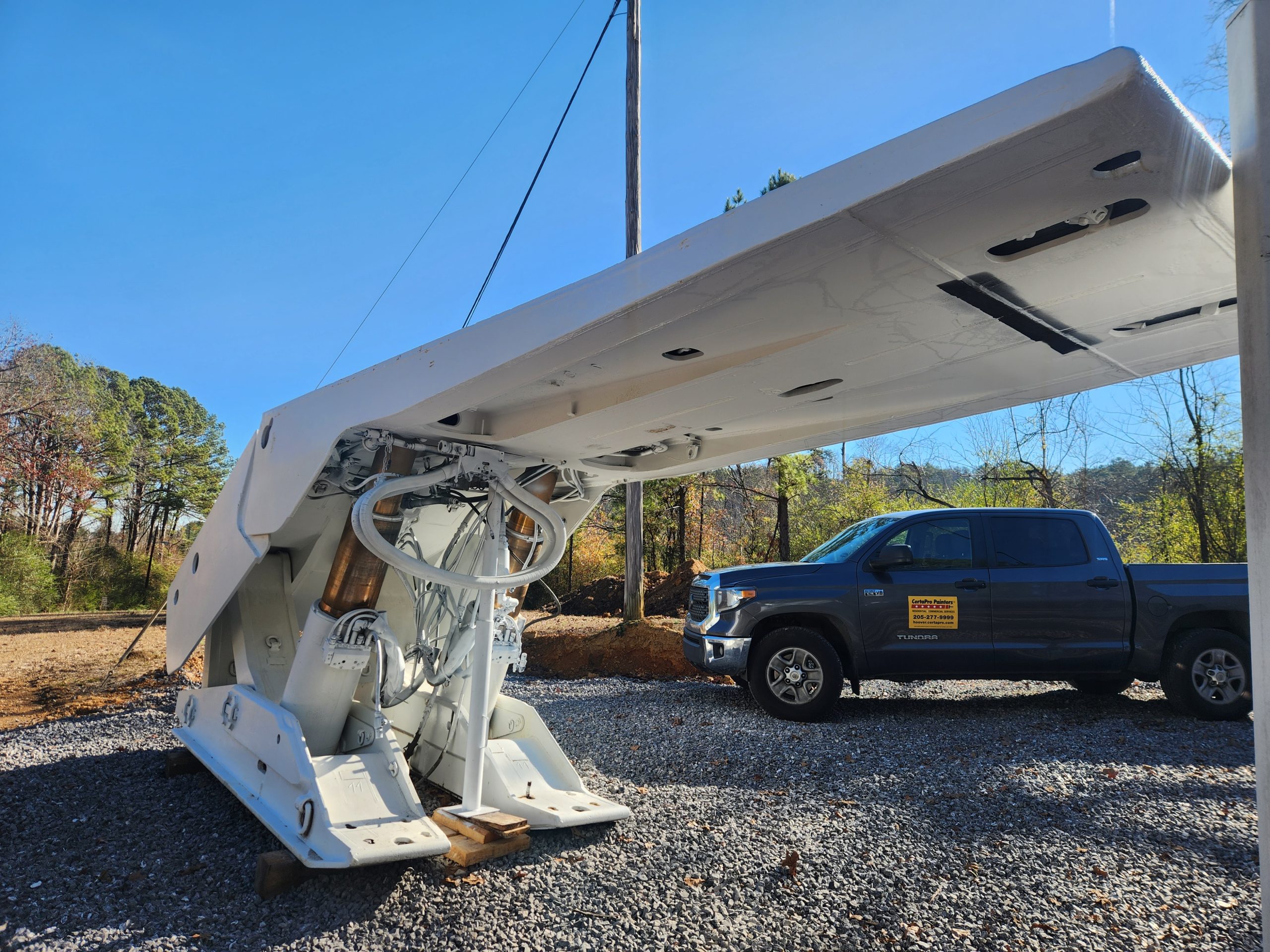 Our team recently worked with Alabama Soda Blasting to media blast, clean, and then paint a pair of Long Wall Roof Supports that are now on display at the entrance to a large underground coal mining operation in North Jefferson County (Adger) Alabama. We used Carboline’s Carbothane 8845 two part acrylic aliphatic polyurethane coating system.