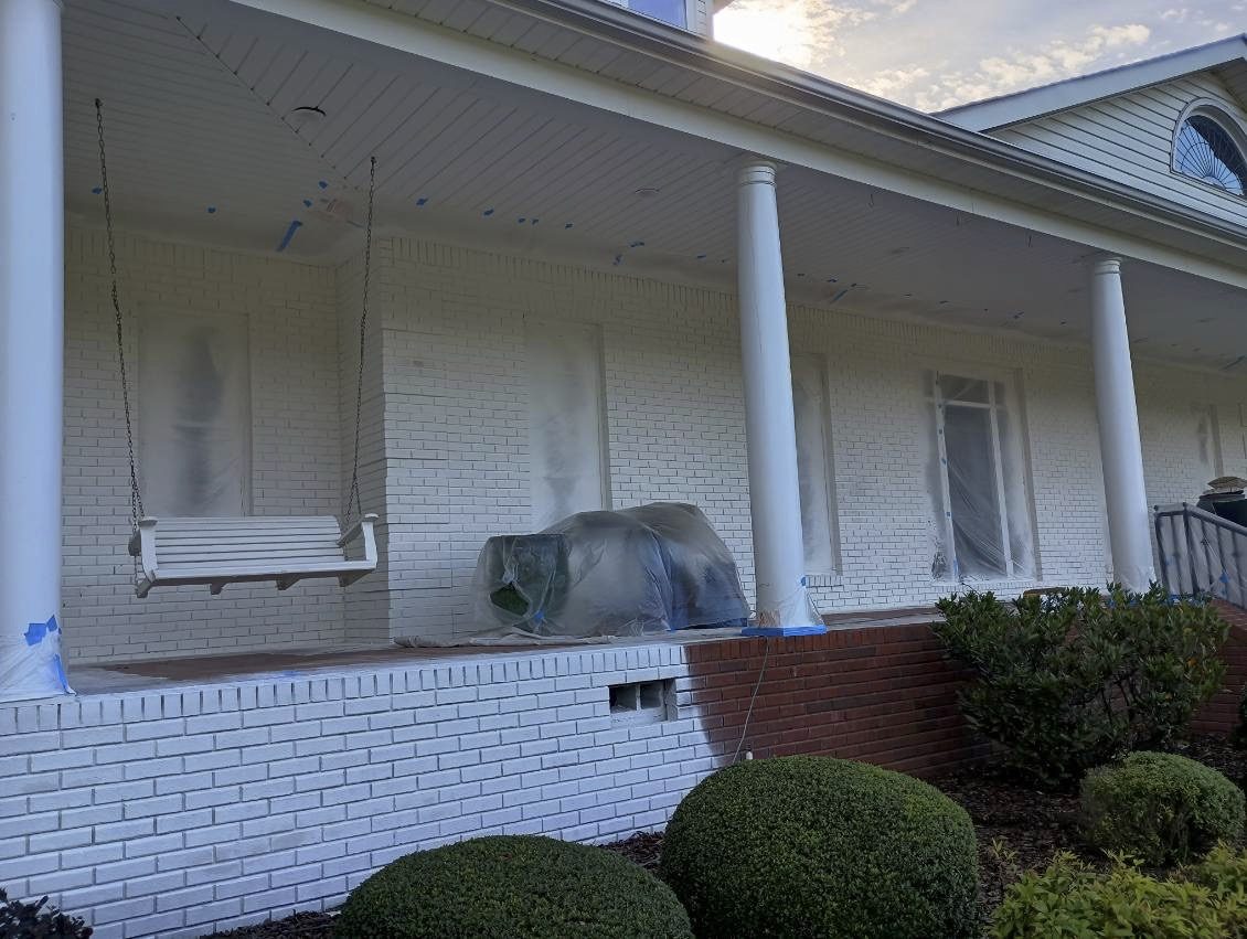 CertaPro Painters of Huntsville took on a project in an upscale subdivision where the house was in good standing condition, though the gutters, downspouts, soffits, fascia, and columns were dirty, despite the brick being in good shape. They began by pressure washing the entire exterior and removing an old canopy on the back of the home to reach all the brick. The team meticulously taped everything off to ensure no areas were painted that didn’t need to be. Instead of painting, they used the age-old practice of lime-washing the brick, allowing it to “breathe,” avoiding moisture issues, and ensuring the color and brick last longer. As part of the process, they lime-washed all retaining walls around the home and washed off a few areas for a distressed look. Additionally, they painted the front door, mailbox, all gutters, downspouts, and shutters. Following the customer’s desired inspiration, the team achieved a more modern look than traditional red brick. Over time, the brick will patina into a more distressed appearance, a highly sought-after look by many homeowners. In a fairly uniform neighborhood, this home now stands out and shines among its neighbors. With this durable and stylish upgrade, the homeowner won’t need exterior work for a long time.