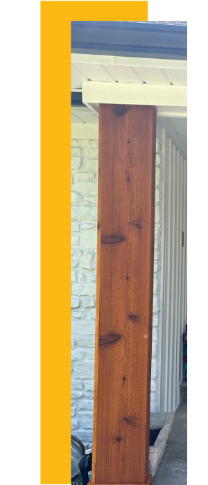 The transformation of the porch was remarkable. The new faux wooden posts gave the porch a modern and fresh look, with the natural wood color standing out beautifully thanks to the clear stain. The customer was thrilled with the new appearance of their porch and appreciated the low-maintenance solution we provided.