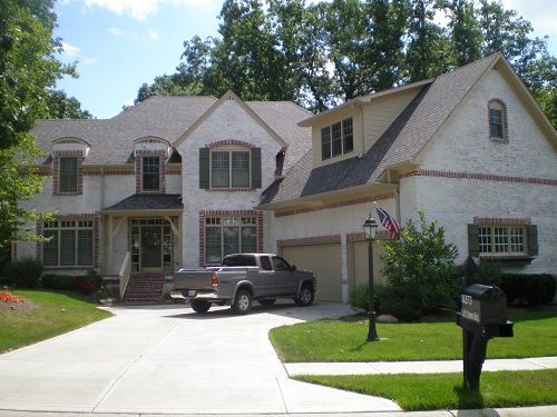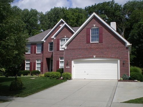 Corner view of the brick home we painted in fishers last year. Painting brick like this is popular in the area.