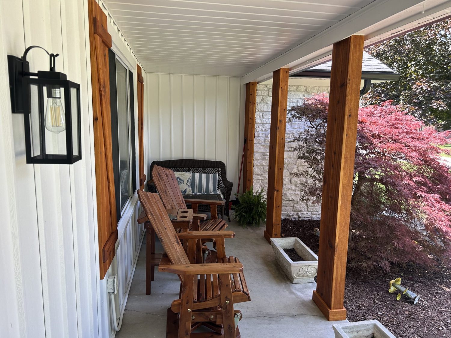 - Staining: To enhance the natural beauty of the cedar, we applied a clear stain that made the wood color pop and added a layer of protection against the elements.