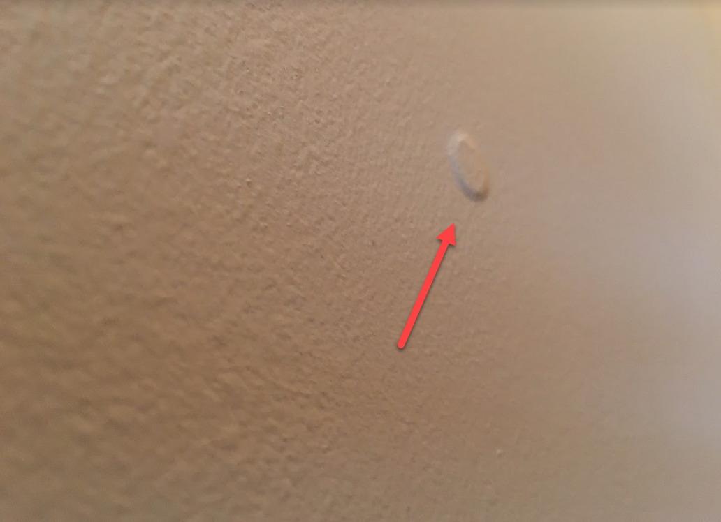 Sometimes nail heads can pop through the drywall causing annoying circles in your perfectly painted walls. This happens as drywall screws or framing nails move from structural or settling tension in the walls. Do not grab a hammer to smack it back in as you could cause more damage to the wall. Reset the nail or screw if needed and use the back end of a screwdriver to create a divot with the nail head in the center. Use joint compound to fill the area. Allow drying time, sand and paint.