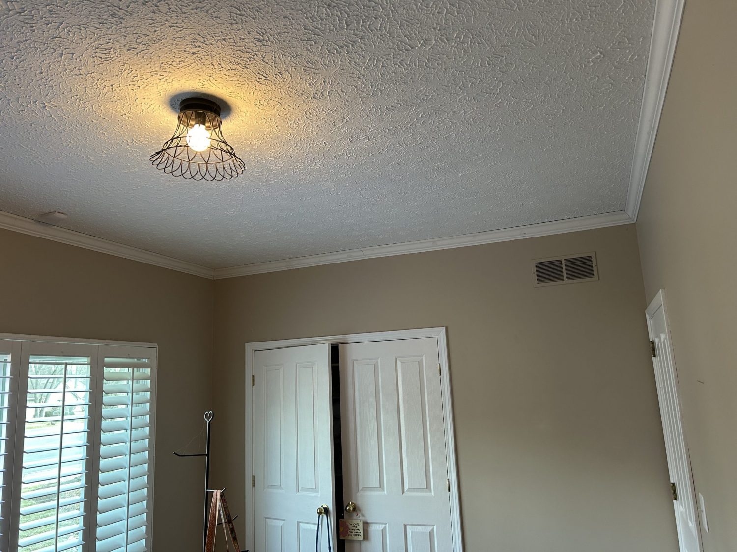 This Indianapolis resident recently had crown molding installed in her spare bedroom by a different company. This company installed the molding incorrectly. by fastening it flat to the wall. Before we could install the molding properly, we had to remove the current molding without damaging the drywall behind it. We were able to use leftover material from the previous attempt to finalize our work.