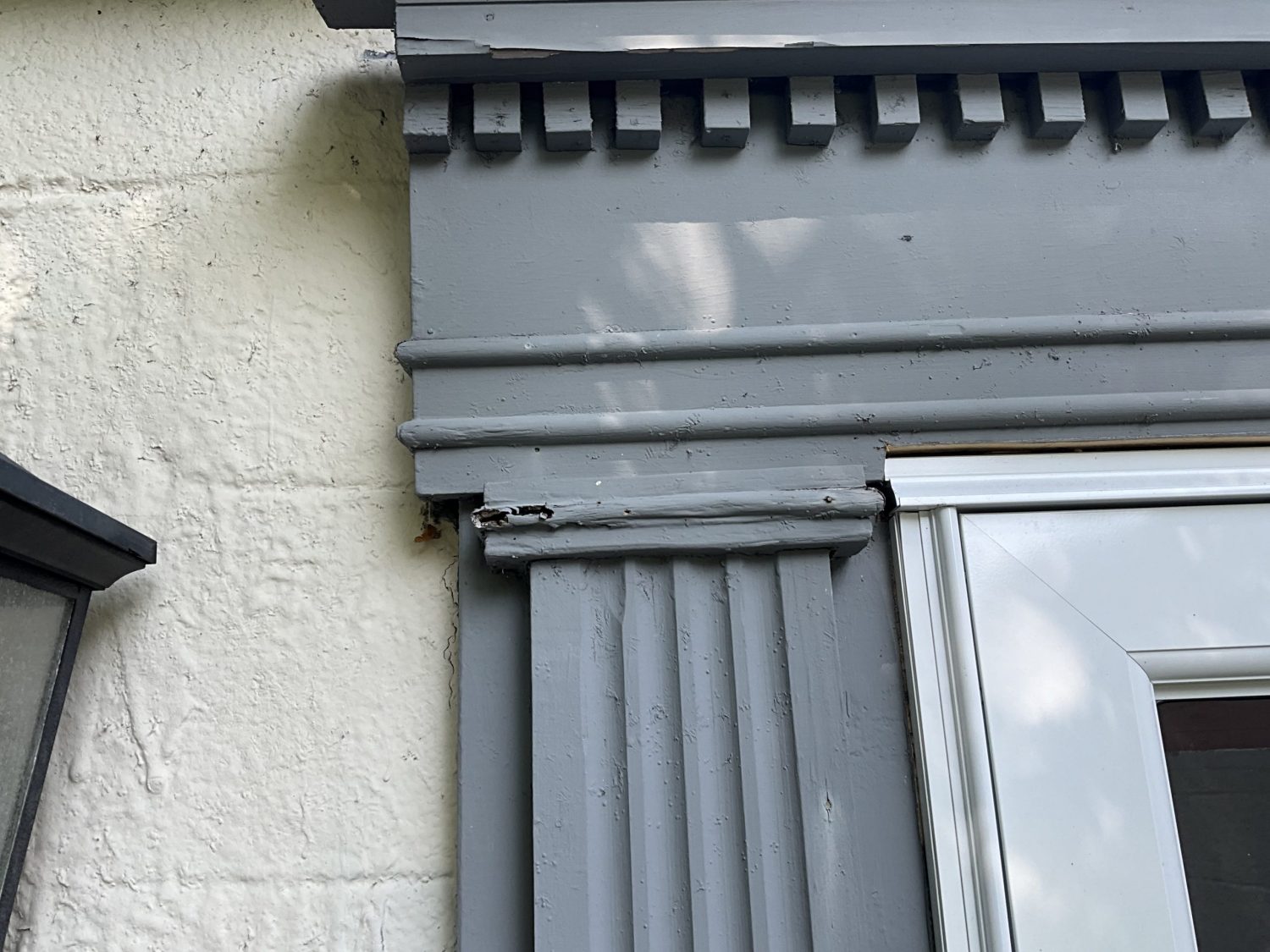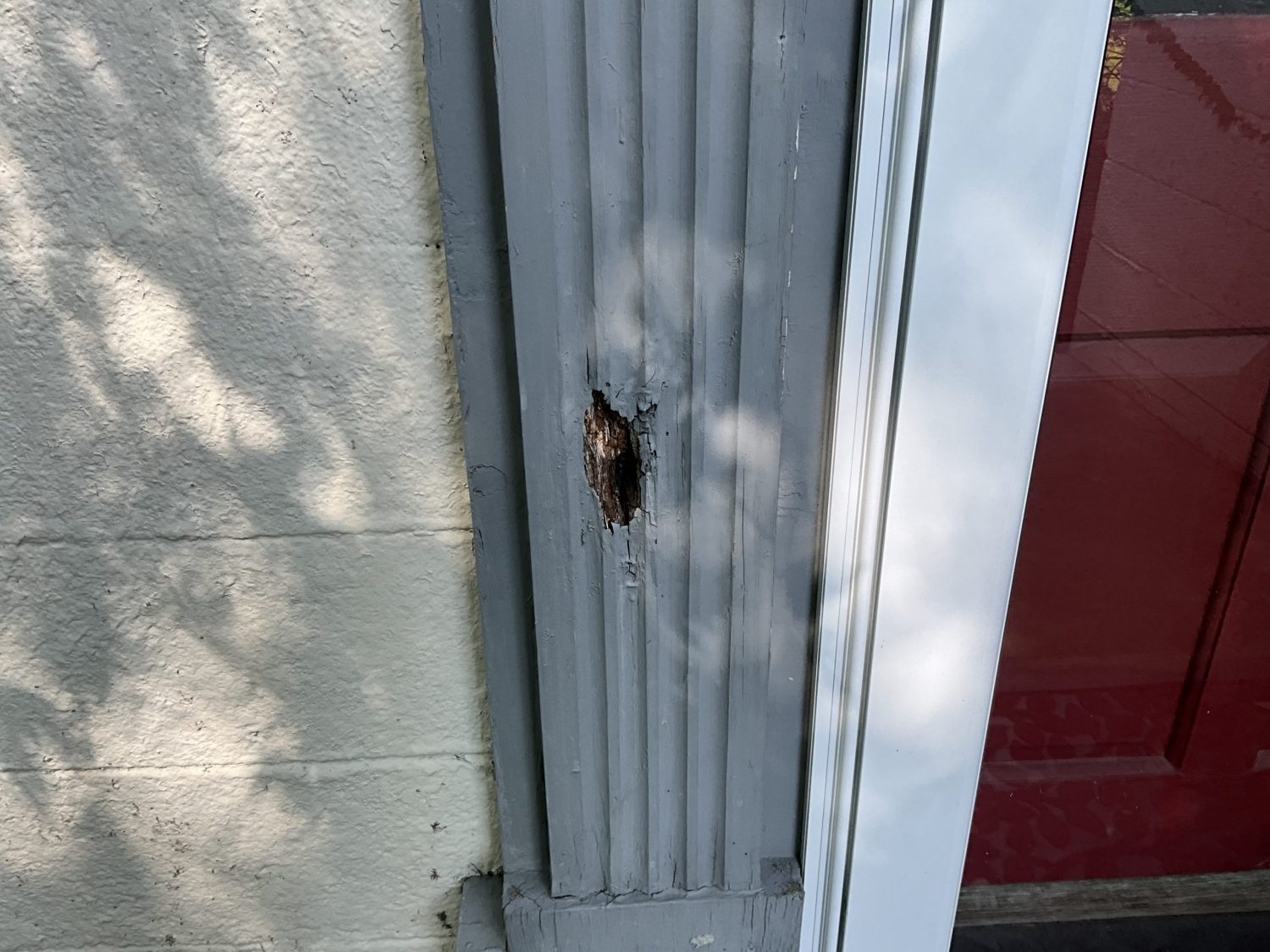 If you are noticing chips or hollow portions on the woodwork around columns around your home, like the one picture here. Replacement is advised.