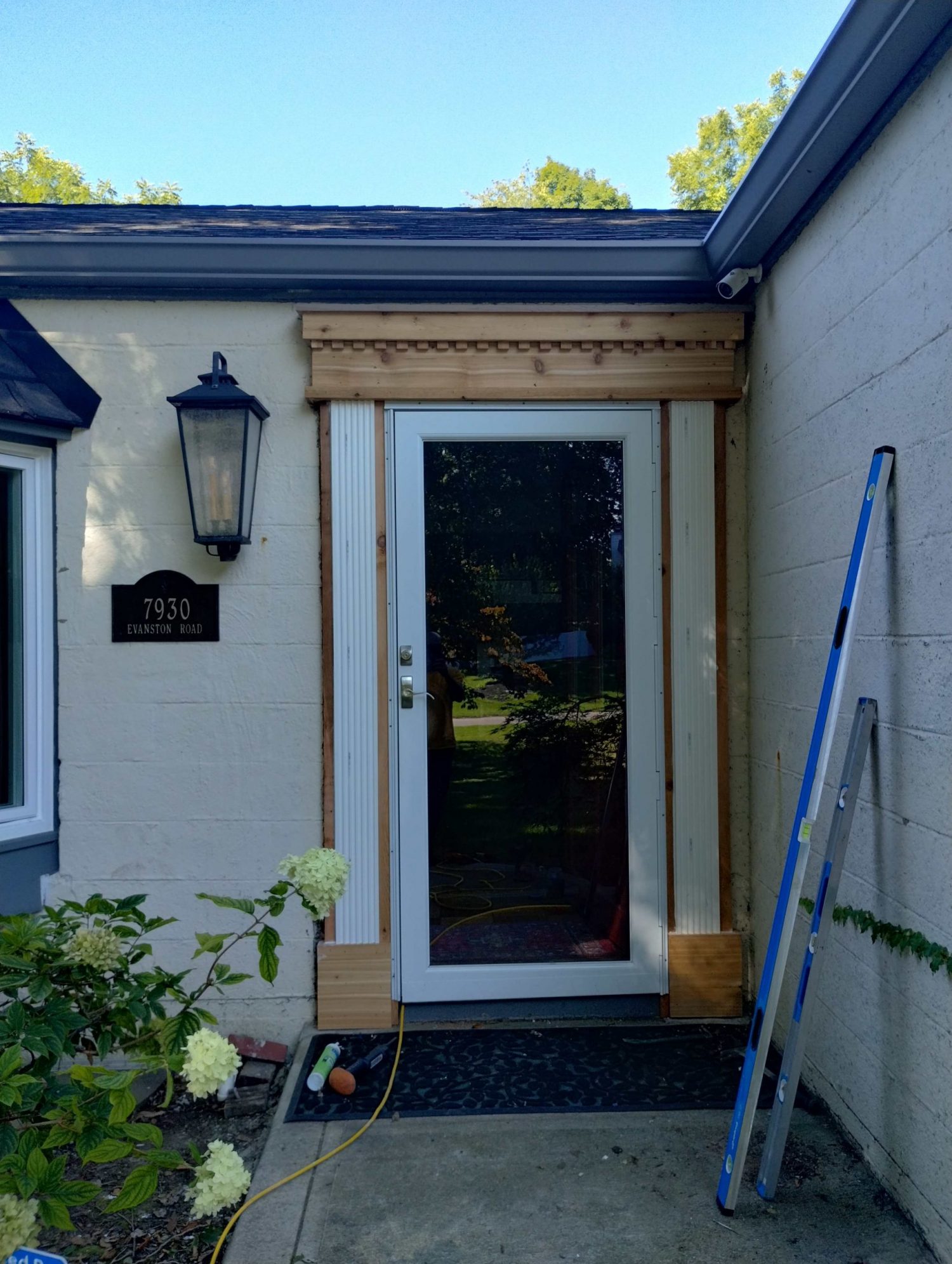 The custom trim around this front door was aged and starting to rot. The customer wanted to freshen it up! We completely removed all the old trim and started with fresh new cedar.