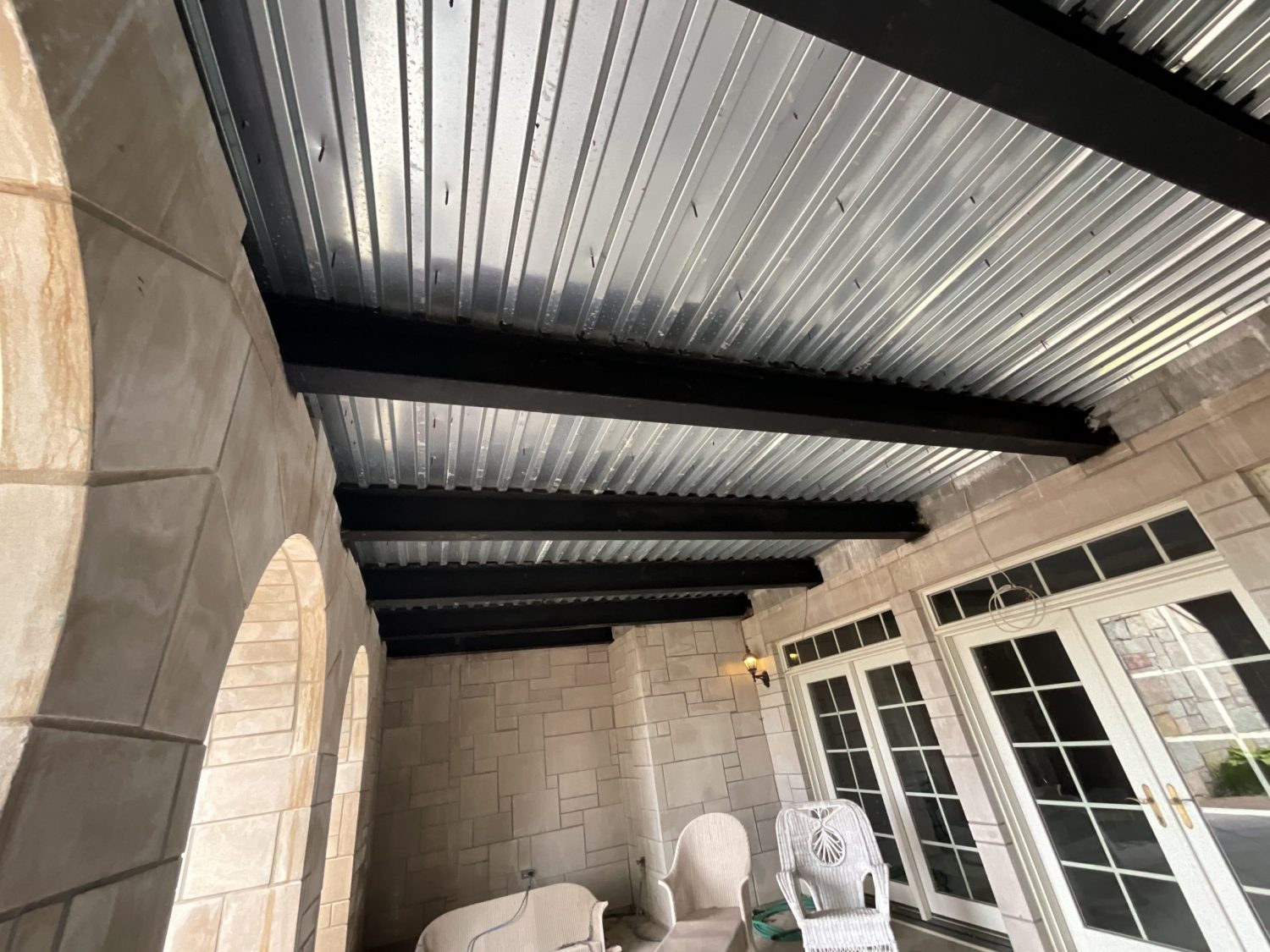 The customers original porch ceiling was damaged and removed due to water intrusion. Another company found the source of the leak but didn’t offer carpentry services to rebuild the custom ceiling.