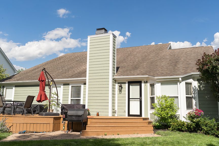 painted home with green siding and white trim