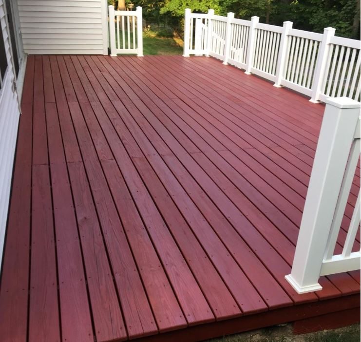 We completed this project in Indianapolis, The red stain with white banisters is a popular look in the area.