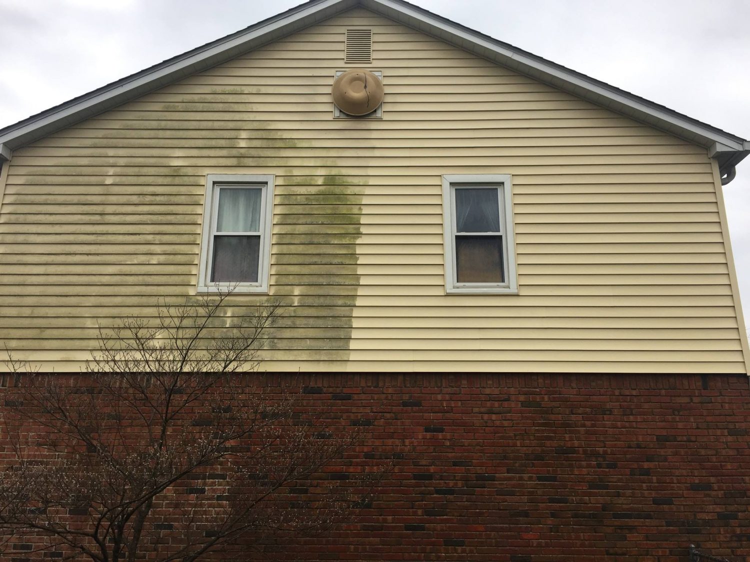 It's common to see mildew and grime on the sides of your home in the Indianapolis area. Multi-surface homes like this one will also get the brick surfaces washed.