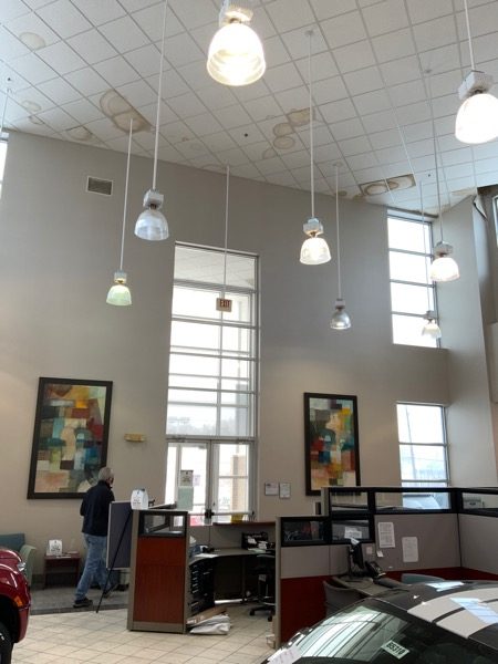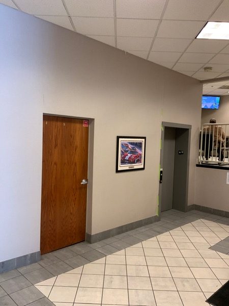 This project involved removing all the old wall covering, skim coating and sanding all the walls to get red of the wall covering damage. Then we had to prime and paint the walls. This was all done at night and in sections so they could keep selling and servicing cars.