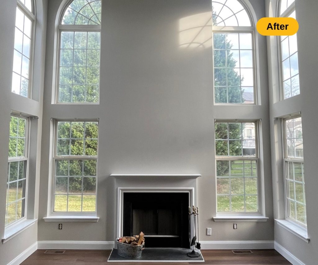 Interior: Your furniture and décor are placed in the center of the room, covered with new plastic, and all flooring is protected with drop cloths.