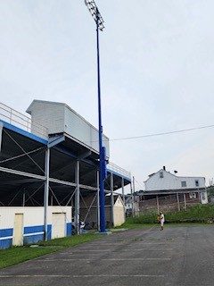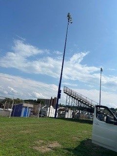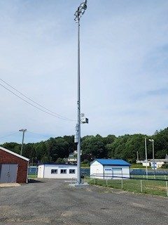 The project took place at a school’s athletic stadium in Minersville, PA. The facility included a stadium with six light poles, each over 80 feet tall, requiring a 120′ lift for access. These poles, with attached concrete bases and safety railings, were integral to illuminating the field for sporting events and likely other school activities held in the stadium.