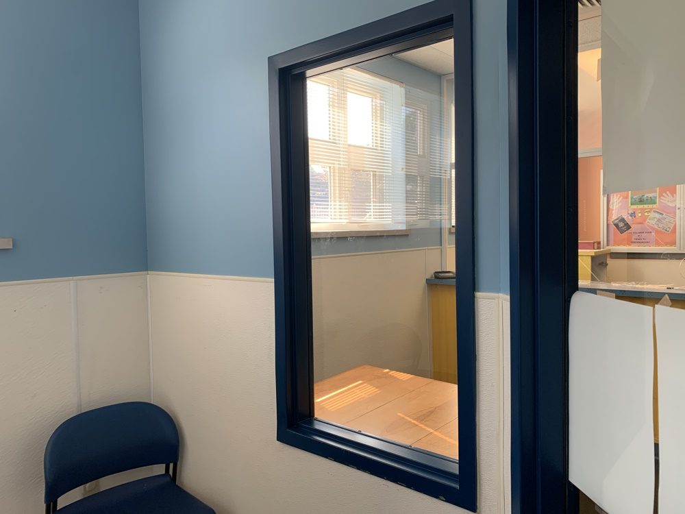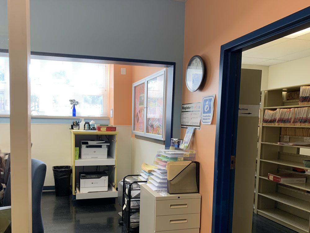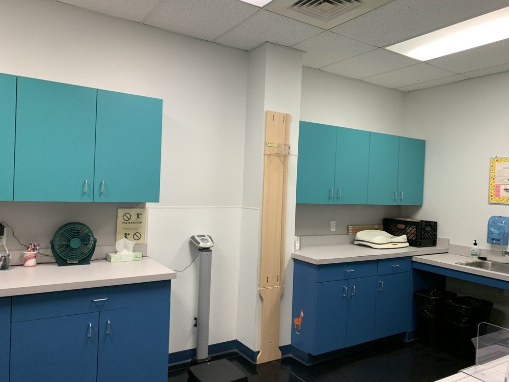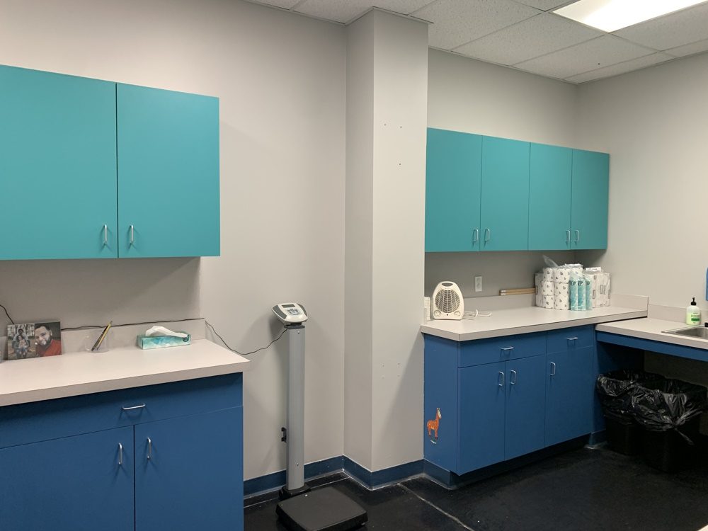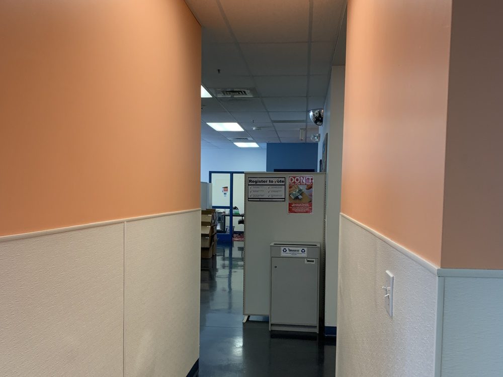 The staff was temporarily housed in another area close by while the work was being done. All painting needed to be completed prior to furniture installation, so the crew worked diligently to complete the job on schedule, working extra hours as necessary. Extra prep time was needed to remove all the old glue after the wall guards were removed and measures were taken to mitigate dust.