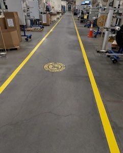 This project involved refurbishing 2,850 linear feet of pedestrian walkways within the Tooling Dynamics Plant during their 10-day holiday shutdown. The crew faced challenges such as severely worn existing markings, requiring intensive scraping, and navigating around immovable equipment. Utilizing fast-cure epoxy and efficient project management, the team successfully prepared the concrete floors, applied new 4-inch lines with whiz rollers, and completed the project within the tight deadline.