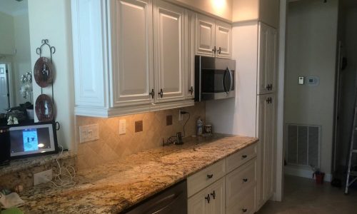 We will carefully remove the doors and hardware from your kitchen cabinets. This is a great opportunity to also upgrade your hardware to match your homes new look!
