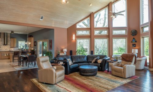 Interior: Your furniture and décor are placed in the center of the room, covered with new plastic, and all flooring is protected with drop cloths.