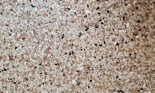 We offer the ¼” Decorative Flake in 2 styles. Solid Flake and the Stone Flake Collection. Solid colors are more dynamic, while the stone collection is more subtle as it is trying to mimic real stone colors. There are 6 standard solid flake colors and 5 standard stone flake colors. For more information about styles and colors, set up a free estimate appointment with our team.