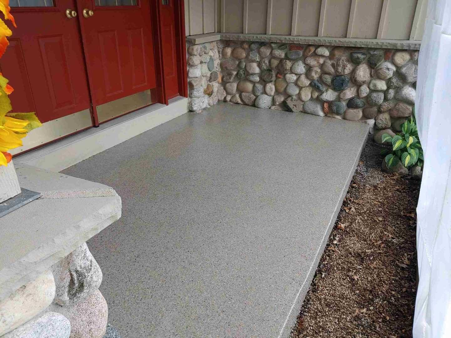 Concrete floors outside can be dull and unsightly, a floor coating installation can add a beautiful aesthetic to the space while also providing functional improvements, like water and slip resistance.