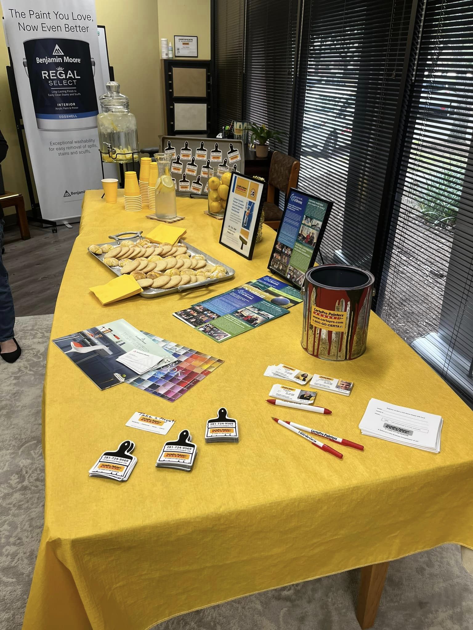 The celebration included a ribbon cutting, an open house for team members and members of the League City and Clear Lake Chambers of commerce, and some interesting painting activities provided by the folks at Benjamin Moore Paints.