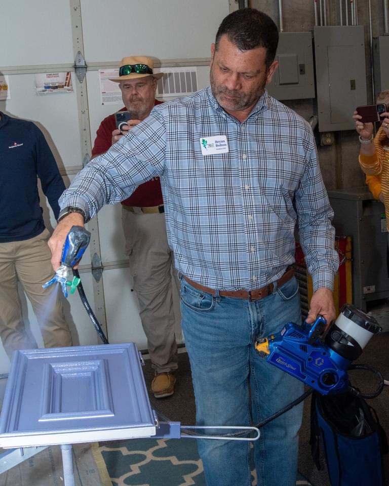 Several Chamber Members even tried their hand using a spray painting rig used in cabinet painting.